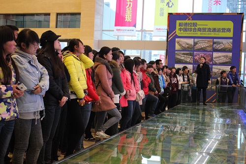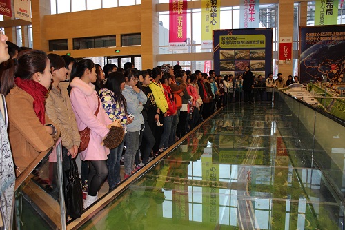 下午5点,全体学生干部来到了兰州毅德城商贸有限公司进行参观和实践学习。在公司相关负责人的安排下,学生干部们参观了毅德城销售大厅,观看了模拟沙盘演示和大屏幕介绍,随后公司安排专门讲解员向现场同学详细介绍了毅德城的整体概况、特点、运营模式、大商贸区、电子商务、中央商务区、物流商贸等,同学们一边认真听、一边记录,还向现场负责人提出了很多与专业相关的问题。随后在公司安排下,全体学生干部分三批在观景台参观了毅德城项目。
