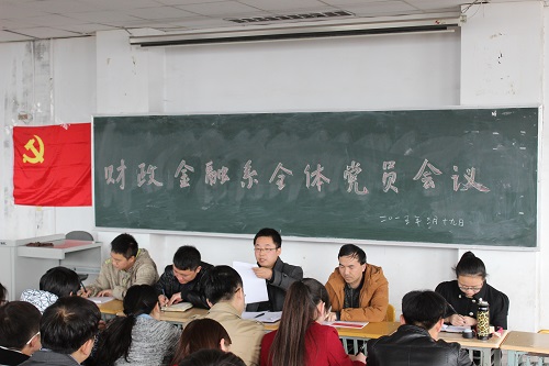 3月19日下午,财政金融系党总支在2号教学楼215教室召开学风建设年全体学生党员会议。党总支副书记张小龙、学生第二党支部书记范瑞雅、学生第三党支部书记刘少东出席,党总支学生委员杨超及我系全体学生党员参加会议,2013级、2014级各班班长、团支书、副班长,学生会相关学生干部列席会议。会议由党总支组织委员、学生第一党支部书记兼党政秘书李鹏程主持。