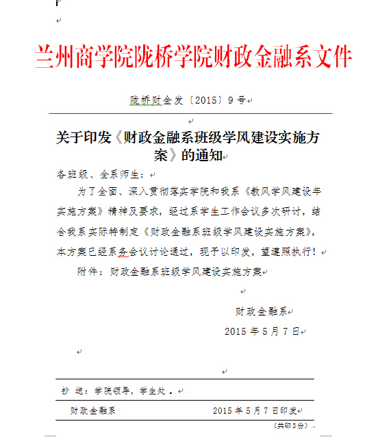 财政金融系班级学风建设实施方案