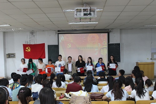 大会在激昂的国际歌乐曲中开始,首先党政秘书李鹏程老师对我系第五十一期入党积极分子培训班培训工作从学习、纪律、结业、优秀学员的评选、学员平时成绩、考试成绩、综合成绩等情况进行了总结并宣读学院党校我系结业学员名单。接着,系党总支副书记张小龙宣读了《财政金融系党总支关于表彰第五十一期入党积极分子培训班优秀学员的决定》(陇桥财金党发【2015】2号)文件并为获得“优秀学员”称号的同学颁发了荣誉证书和奖品。随后,李鹏程、范瑞雅、刘少东老师分别为结业学员代表颁发了党校结业证书。大会最后,张小龙书记发表了讲话,他向参会的全体学员提出了五点要求。第一,全体学员要不断认真学习党的路线方针政策和党的基本知识,不断提高自己的理论水平,认真学习社会主义核心价值观和“三严三实”并模范践行;第二,要刻苦学习文化科学知识,不断提高自己的实践能力和创新能力,努力通过计算机二级和英语四级,做一名优秀的大学生;第三,要模范遵守党纪国法、校纪校规,严格落实学院日常行为规范养成教育要求,发挥表率作用,做学生楷模;第四,积极参加班级、系里、学院各项活动,热心为集体、同学服务;第五,正确对待党组织的考验,不断端正入党动机,争取早日加入中国共产党。