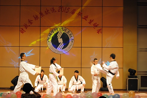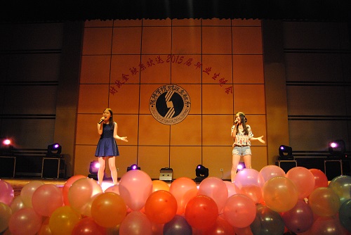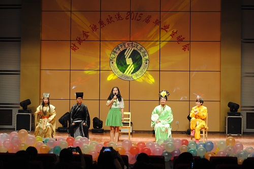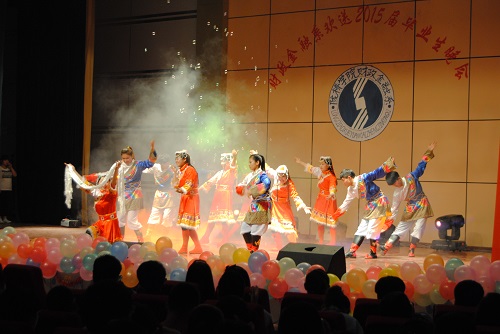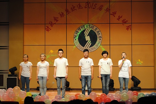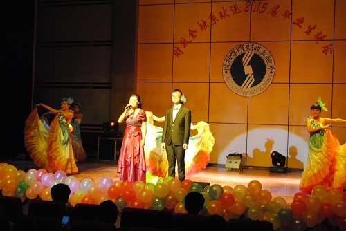 接踵而至的是一曲活力四射、充满激情与动感的歌伴舞《一起飞》,伴随着舞者们优美的舞姿,文艺晚会正式拉开了帷幕。毕业季是一种难舍的情怀,毕业季是一曲难离的殇歌,毕业季是一种洋溢着收获喜悦的陈年老酒。由舞蹈《一起飞》、《moves like jagger》、诗朗诵《今天,我们毕业了》、古典舞《相思引》组成了晚会第一篇章《毕业季》,把现场观众带入了那个难舍难离的场景。母校是那个一睁开眼就有人说“还不起床,要迟到了”的地方;母校就是那个让人留恋难舍但是嘴上还要吐槽的地方;母校就是那个离开了却一直恋着,想回去而又很难有机会的地方。每个毕业生心里都有着一份母校情结,第二篇章《念母校》就向我们诉说着这种情结。诙谐幽默的小品《四名争霸》、充满祝福的民族舞蹈《美丽中国》、热情奔放的锅庄舞表演、最后以一曲小合唱《难忘陇桥的时光》将整场晚会拉回到了毕业生对母校的无限怀念之中。一首《毕业日记》的诗朗诵将晚会带入了第三个篇章《忆流年》。这里有我求学的足迹、这里有我为了一份好工作、为了考研孜孜以求,努力拼搏的身影,怎能不让我回忆。看吧,我的心声就在那情景剧《毕业季》之中。伴随着《匆匆那年》熟悉的旋律,歌者优美的歌声瞬间引爆全场激情,掌声不断,人气爆棚,现场成了欢乐的海洋,将晚会推向了高潮,同时晚会也来到了第四个篇章《新起航》。二胡演奏《赛马》预示着财金学子、陇桥学子将在职场上策马奔腾、扬帆起航。话剧《闺蜜》更是反映了毕业生朋友们在离别之际的真实境况,充满现实感而又耐人寻味,尤其是表演者惟妙惟肖的人物刻画更赢得了观众的阵阵掌声,现场笑声连连。晚会最后在歌曲串烧《青春不老,梦想起航》中又一次达到高潮。由教师代表、毕业生、在校生精彩演唱的一首首经典歌曲将祝福送给了毕业生朋友,将他们的笑容和感恩永远留在了母校。