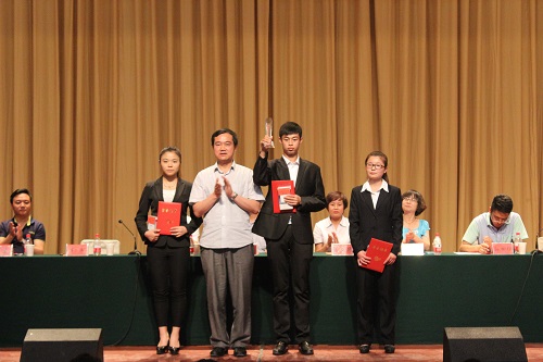 闭幕式在雄壮的国歌声中拉开帷幕,首先,系主任史安玲副教授宣读了《关于表彰第四届金融文化节获奖学生代表队及优秀个人的决定》。接着,财政金融系党总支副书记张小龙宣读了《关于表彰“学习‘三严三实’精神,学风建设与我同行”征文大赛先进个人和优秀集体的决定》。随后,学院领导、嘉宾为获奖同学颁发了荣誉证书和奖品。