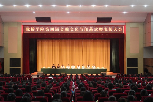 7月1日下午,由学院教务处和团委联合主办,财政金融系承办的学院第四届金融文化节闭幕仪式暨颁奖典礼在学术报告厅隆重举行。兰州银行和平支行行长郑明昊,兰州市城关区农村信用合作联社青白石信用社副主任秦西华,华龙证券兰州永昌路营业部总经理马欣,学院院长助理、教务处处长高军,学院经济学科教学总监樊元教授,以及各处(室)负责人,老师学生等800余人参加了闭幕式。闭幕式由财政金融系教学副主任许明主持。