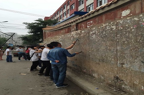 7月3日下午,我系150余名党员、预备党员来到校门外“三包责任区”进行“校园卫生清理党员在行动”第二场教育实践活动。活动中我系党员、预备党员利用铲刀等工具认真清理了学院校门外围墙上的各类广告等张贴物,并且清理了校门外的环境卫生,历时近一个小时圆满完成了实践任务。活动结束后,面对自己的劳动成果广大党员真正感受到了劳动的快乐。一些同志表示,以前路过时看见贴满广告的围墙感觉很影响心情、影响学校形象,同时也在心里暗暗谴责那些张贴的人没有道德,破坏了美丽的校园环境,但是从来没有意识到去把它撕掉或者遇见时劝阻他们别贴,经过本次教育实践活动以后我们一定会爱惜我们的陇桥家园,主动承担起党员责任。