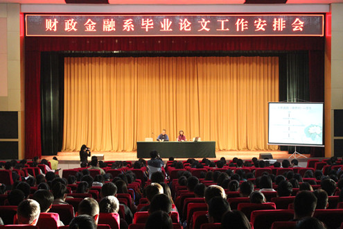 由于2012级学生即将迎来严格的毕业论文工作,10月13日下午2:30,财政金融系2016届毕业论文工作安排布置会在学术报告厅召开,财政金融系主任史安玲副教授、教学副主任李互武副教授发表讲话,财金系12级全体学生与会。