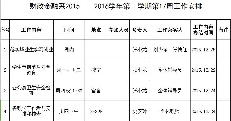 财政金融系2015——2016学年第一学期第17周工作安排
