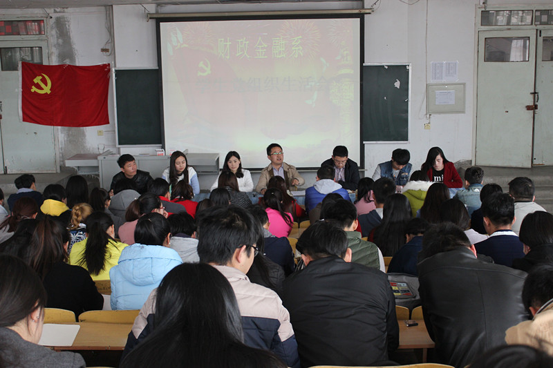 3月15日下午,财政金融系党总支召开以“文明在于细节,安全在于防患”为主题的新学期第一次党组织生活会。系党总支副书记张小龙,学生各党支部书记、全体党员(预备党员)参加了大会,会议由系党总支组织委员常红娟主持。