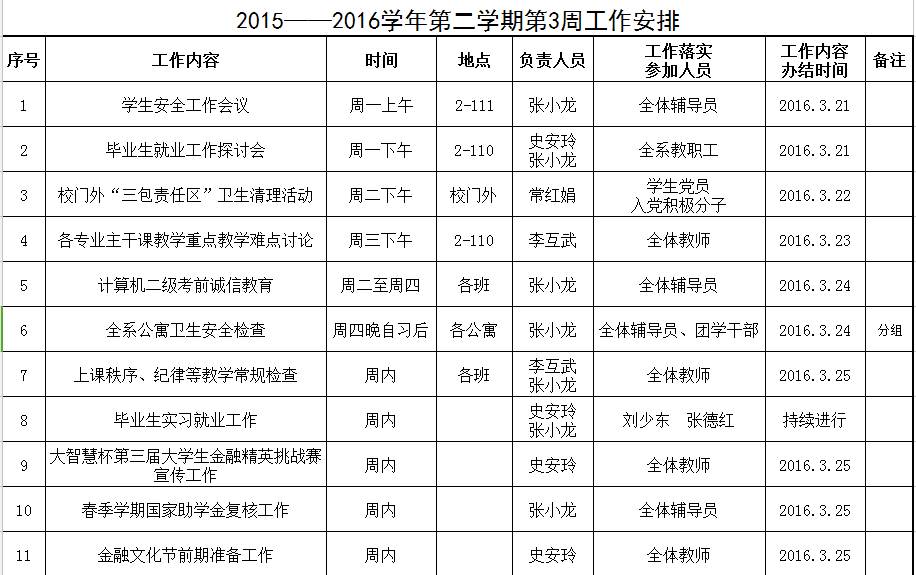 2015——2016学年第二学期第3周工作安排