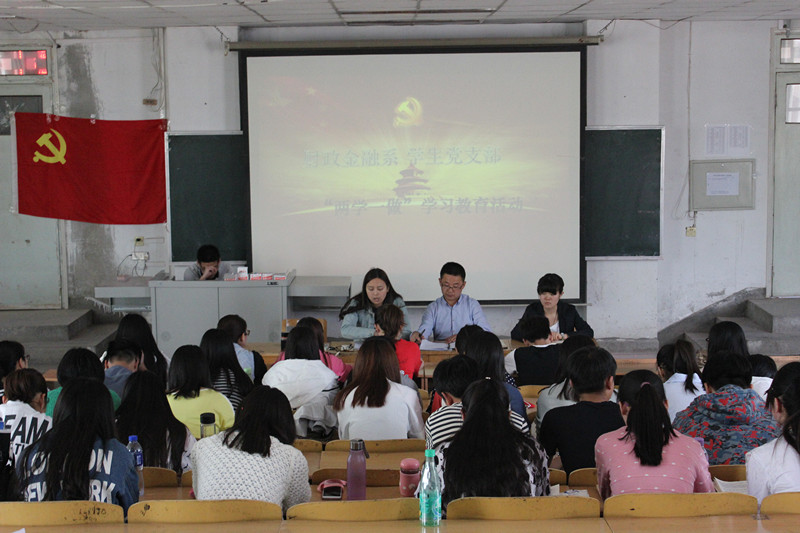 为强化党员意识、提升党性修养,规范学生党员行为,全面贯彻落实学院党委关于“两学一做”教育实践活动的安排部署,财政金融系党总支于5月10日下午在2-115召开了 “两学一做”党员教育专题组织生活会。财政金融系党总支副书记张小龙、支部书记李璇及全体学生党员参加了本次会议。会议由党总支副书记张小龙主持。