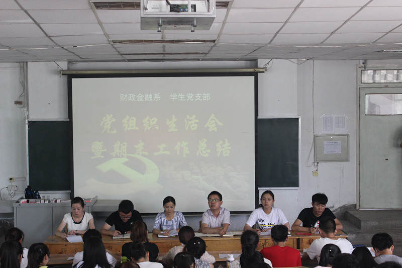 7月7日中午,财政金融系党总支在2号楼115阶梯教室召开本学期最后一次党组织生活会暨学期工作总结会。系党总支副书记张小龙,学生第一、二、三党支部书记及全体学生党员、预备党员参加了大会。会议由系党总支青年委员郭加华主持。