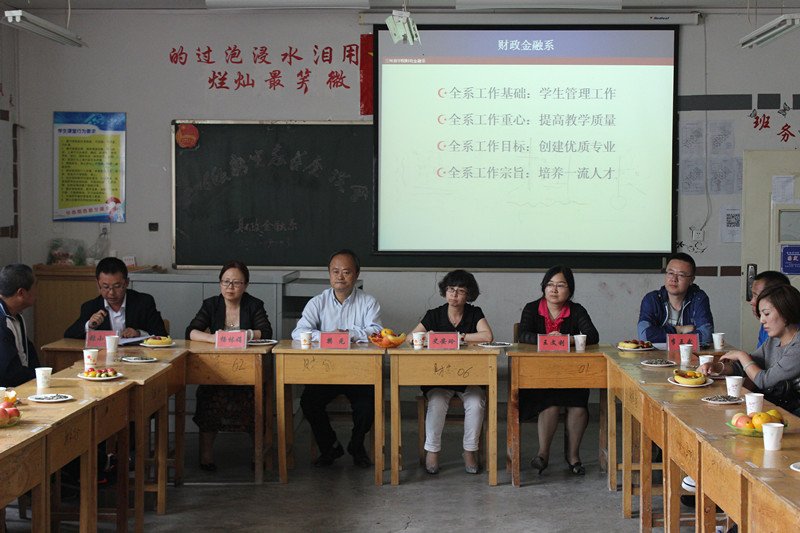 9月3日下午,财政金融系在善问楼104教室举行了2016级新生家长见面会。学院经济学科教学总监樊元教授、财政金融系教授委员会成员杨林娟教授、王文利教授,系领导班子、各教研室主任、大一新生班辅导员以及50余名新生家长参加了会议,会议由教学副主任李互武主持。
