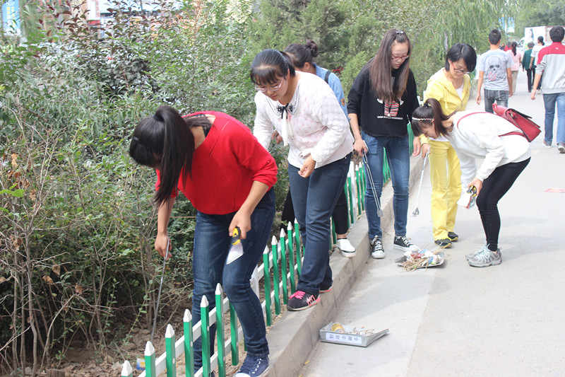 9月23日下午,财政金融系组织学生和青年志愿者协会在校门口开展了以“维护校园卫生,共建美好校园”为主题的卫生清洁活动。