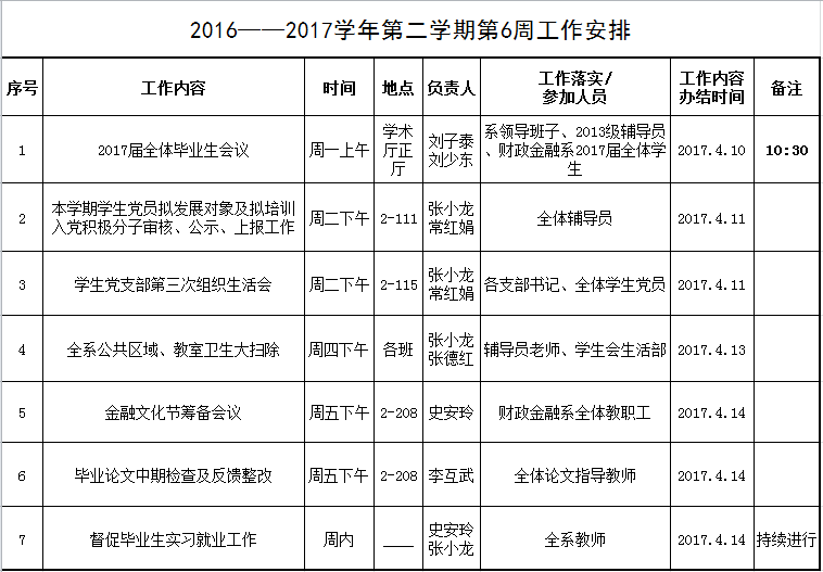 2016——2017学年第二学期第6周工作安排