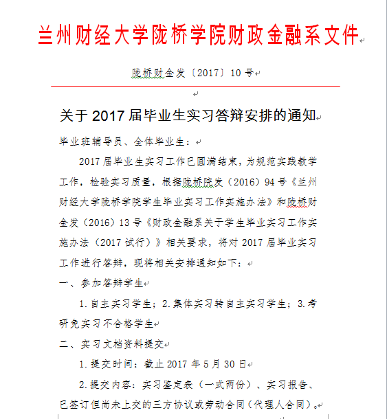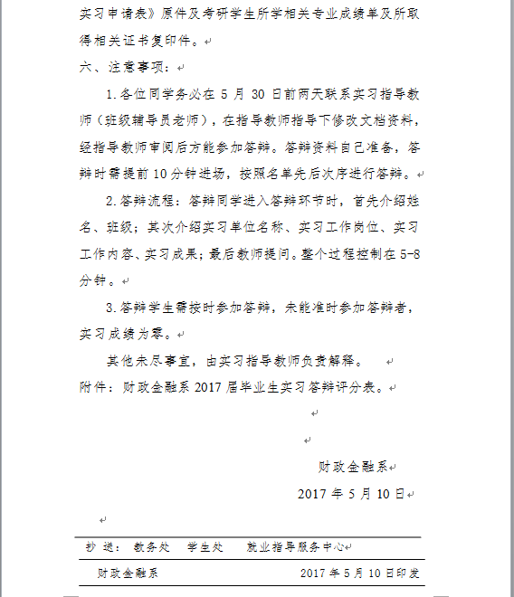 关于2017届毕业生实习答辩安排的通知