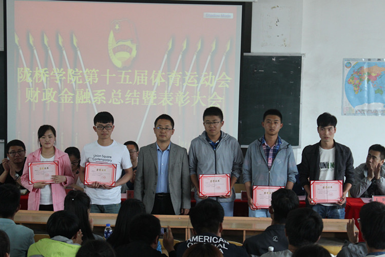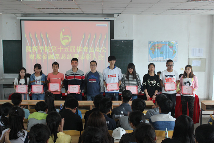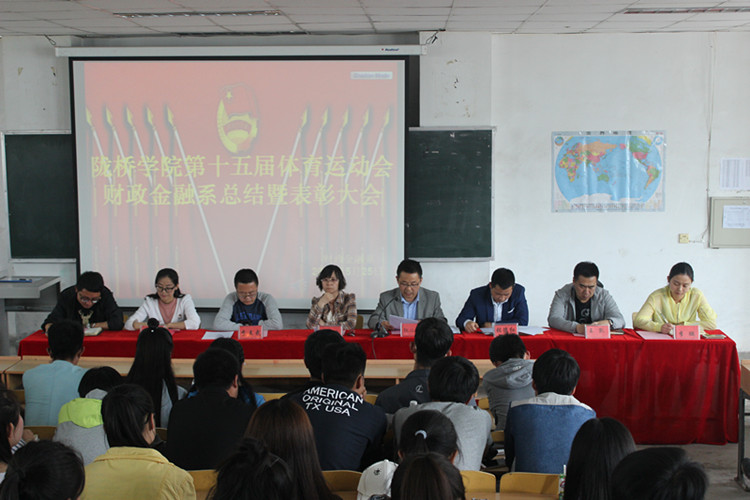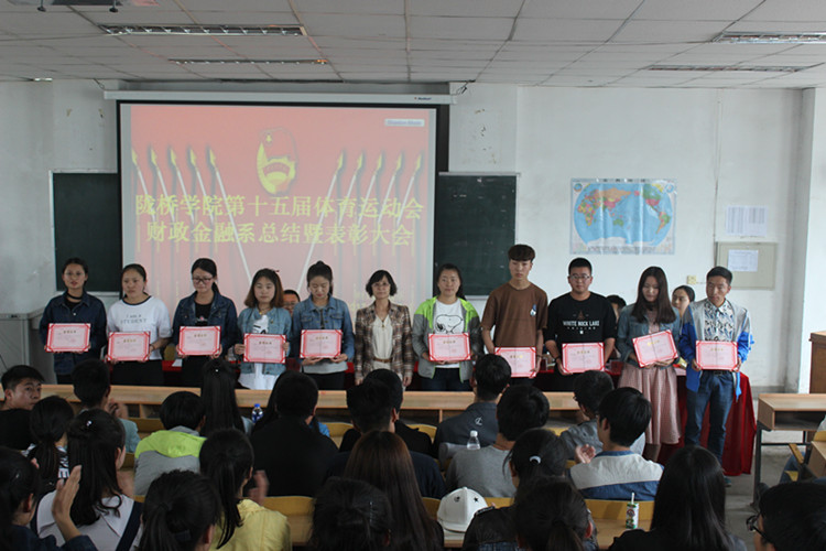为表彰优秀运动员,总结在学院第十五届运动会中取得的成绩与存在的不足,提升同学们的参与积极性。5月25日下午,财政金融系在2-215教室召开运动会总结暨表彰大会。系领导班子、全体辅导员老师、全体团学干部及班干部、全体运动员参加了大会。会议由党政秘书常红娟主持。
