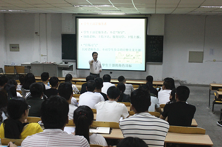 张小龙书记对2016级班干部作了培训。他讲到,班干部是沟通老师和学生之间的桥梁和纽带,有着重要的作用。一个班干部既代表老师的形象,又体现学生的利益,因此班干部在说话、工作时的技巧和艺术尤为重要。并指出好的班干部既具备“六种能力”:管理能力、组织协调能力、观察、分析问题能力、语言表达能力、出主意、想办法能力以及处理突发事件的能力。又善于处理“四种关系”:班干部与同学的关系、班干部之间的关系、班干部与老师的关系、班干部和学习、工作、休息的关系。