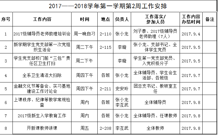 2017——2018学年第一学期第2周工作安排