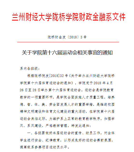 关于学院第十六届运动会相关事宜的通知