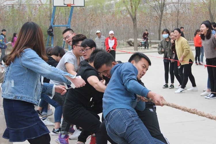 活动以班级为单位进行,共21个班级参加,每班由7名男生和6名女生组成,比赛实行3局2胜淘汰制。当比赛的哨声一响起,各班队员们口中一起高喊着“一二,一二”,使出浑身力气把绳子向后拉,绳子中间的红线左右摇摆。拉拉队员在旁边高声呐喊着“加油”!号子声、呐喊声此起彼伏,气氛热烈。比赛中,各参赛班级同学表现出了顽强的意志和拼搏精神,既赛出了水平又赛出了风格。一场场比赛也牵动着老师们的心,辅导员老师纷纷在旁加油助威,呐喊声中师与生融为一体,师生的心贴得更紧了。