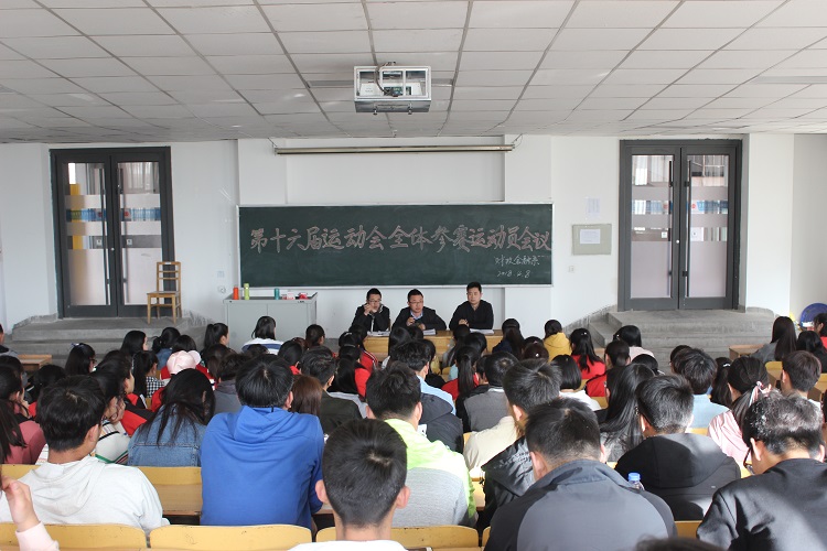 张小龙副书记宣读了陇桥财金发[2018]3号《财政金融系关于学院第十六届运动会相关事宜的通知》,并强调,运动会是学院一项重要的教学活动,全系上下要高度重视、全员参与,要在全系形成浓厚的集体荣誉意识。他希望报名参加训练的同学们都能发扬吃苦耐劳的精神,提早做好心理准备,勇敢面对接下来的艰苦训练并坚持到底。最后,张书记要求大家,一是要精心组织,安全第一;二是遵守纪律,刻苦训练;三是努力拼搏,展示风采;四是服务工作组责任到人,做好各项后勤保障工作。