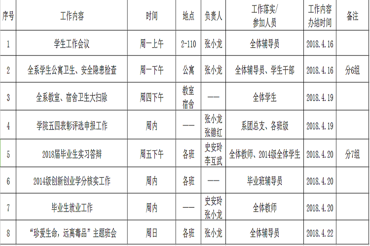 2017——2018学年第二学期第7周工作安排