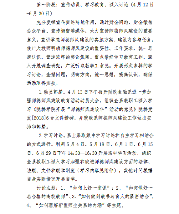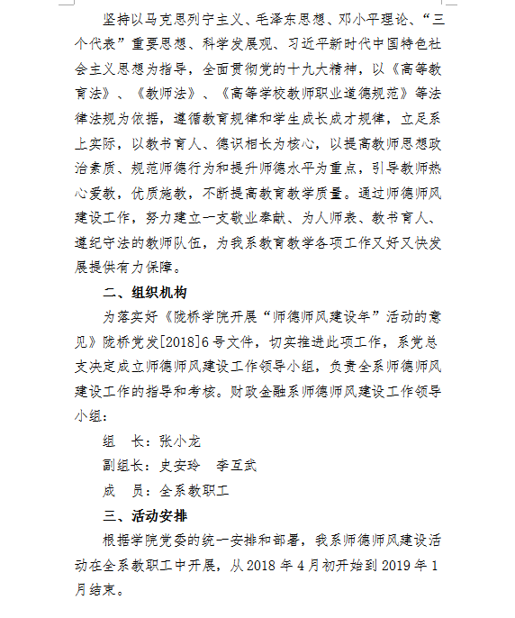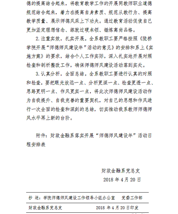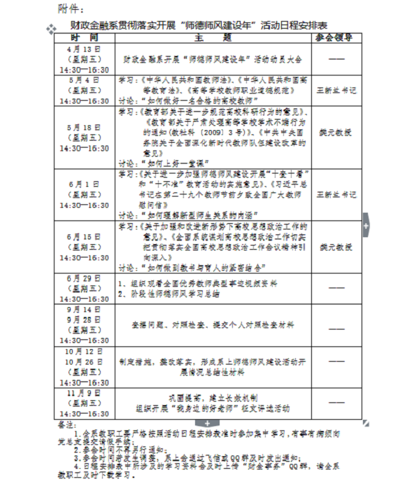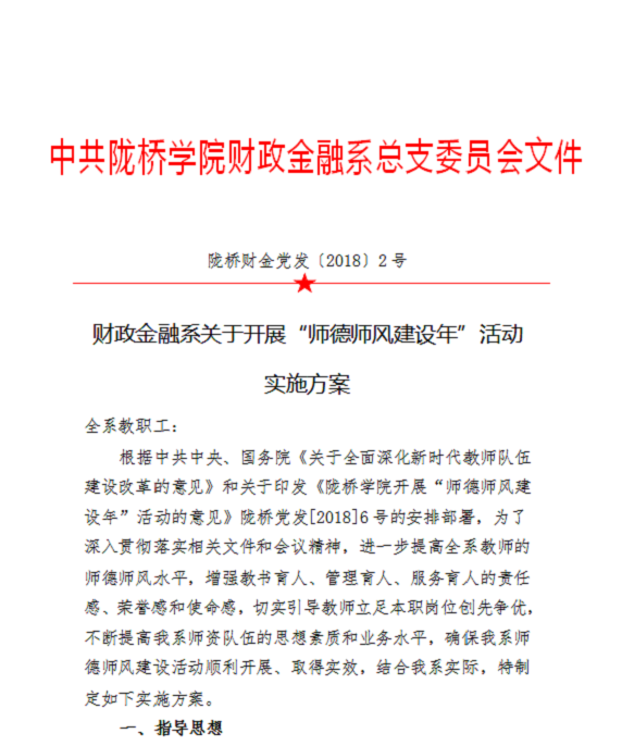 财政金融系关于开展“师德师风建设年”活动实施方案