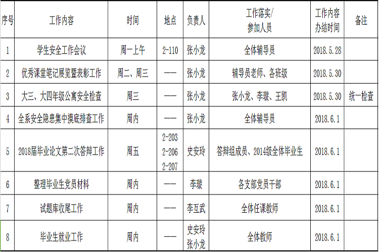 2017——2018学年第二学期第13周工作安排