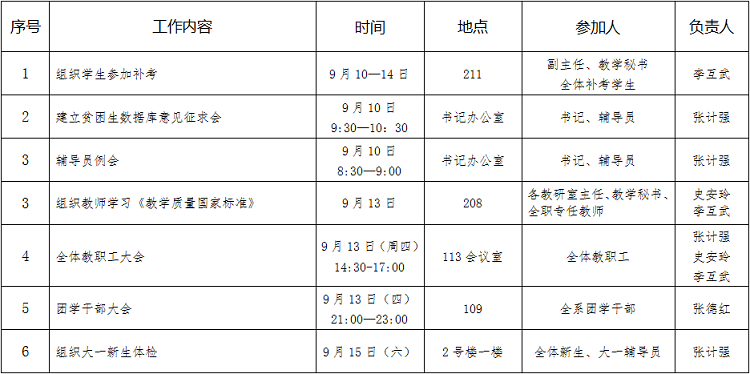 财政金融系2018—2019学年第一学期第3周工作安排