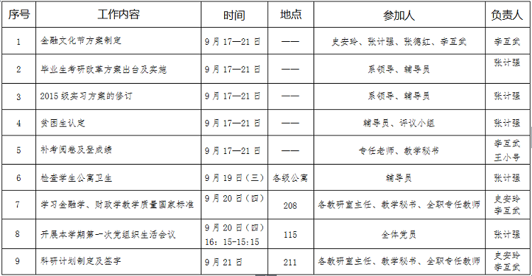 财政金融系2018—2019学年第一学期第4周工作安排
