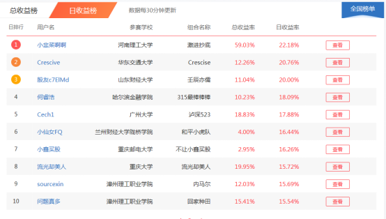 由团中央学校部、全国学联秘书处主办,东方财富信息股份有限公司、全国学校共青团研究中心承办 , 全国财经类高校共青团工作联盟协办,Choice 数据提供数据支持的第四届 " 东方财富杯 " 全国大学生金融精英挑战赛于 2018 年 6 月起正式启动,我校积极组织广大学生参与比赛,报名人数达1200多学生,通过为期一个多月的初赛后,有350多人晋级复赛,目前正在复赛组队中。