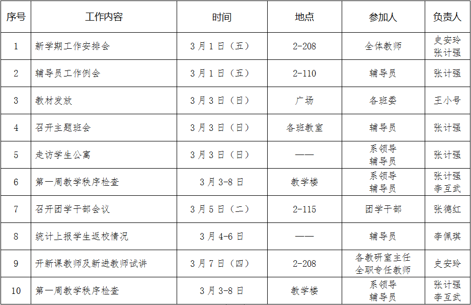 财政金融系2018—2019学年第二学期第1周工作安排