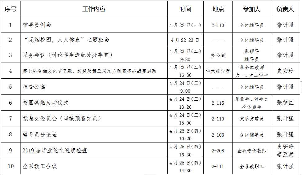 财政金融系2018—2019学年第二学期第8周工作安排