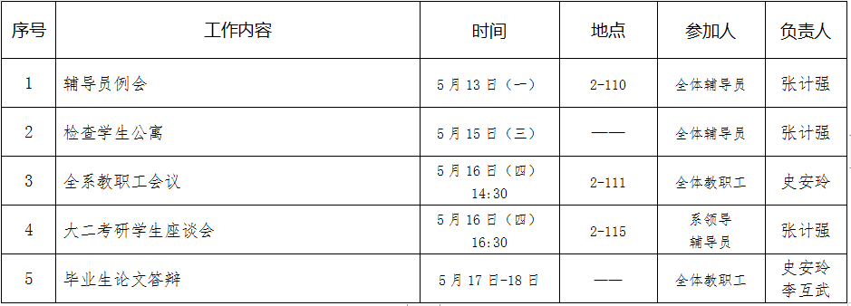 财政金融系2018—2019学年第二学期第11周工作安排