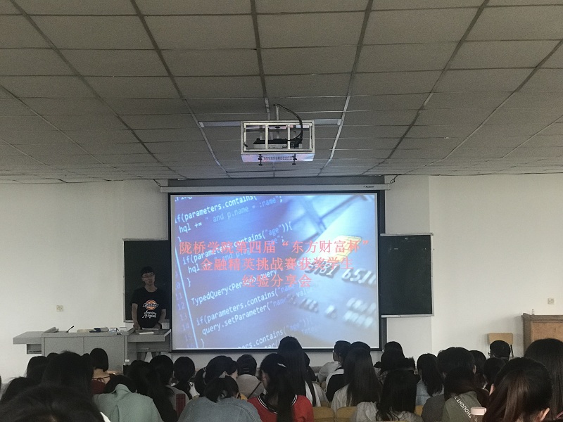 6月19日下午,财政金融系在2号楼215教室举办了陇桥学院第四届“东方财富杯”金融精英挑战赛获奖学生经验分享会。第四届“东方财富杯”金融精英挑战赛获奖学生和第五届“东方财富杯”金融精英挑战赛晋级学生参加了此次分享会。
