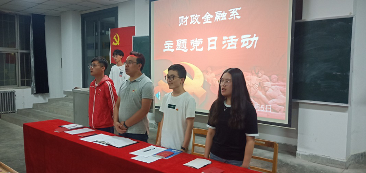新学期伊始,为深入学习贯彻习近平新时代中国特色社会主义思想和党的十九大精神,强化党员党性意识和宗旨观念,激励广大党员树立崇高理想信念,树牢“四个意识”、坚定“四个自信”、做到“两个维护”,持续推进“两学一做”学习教育常态化制度化,激发广大党员不忘初心、牢记使命、务实担当、勇于创新、刻苦学习的热情,财政金融系党支部在善问楼115教室召开新学期主题党日活动。系党总支书记张计强、学生党支部书记、副书记及65名学生党员参加了本次活动。