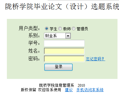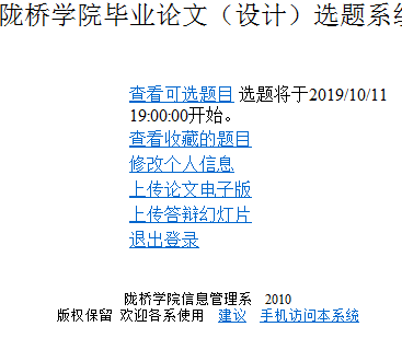 1.此次毕业论文选题全部通过我院“论文选题”系统来完成。
