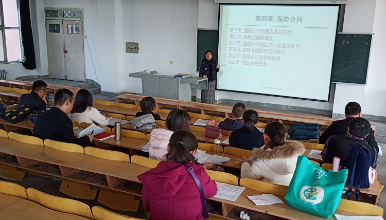 2019年11月7日下午,财政金融系在2号教学楼215教室组织召开2019-2020学年第一学期第五期教学观摩活动,本期教学观摩主讲老师为保险学教研室主任李小艳,讲课内容为《保险学》课程中涉及保险合同的特征中的部分内容,我系各教研室主任、全职专任教师共11人共同观摩了课堂教学过程。