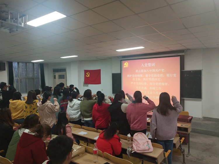 会上,全体党员佩戴党徽,高唱国歌,集体诵读《党章》。接下来由发展对象向支部大会提交入党申请,按照党员发展和转正流程各位党员同志对37名积极分子的发展问题进行了充分讨论,入党介绍人就发展对象在积极分子时期的表现分别表达了个人意见,并由有表决权的正式党员进行无记名投票,大会一致同意王淑霞等37名同志发展成为中共预备党员。