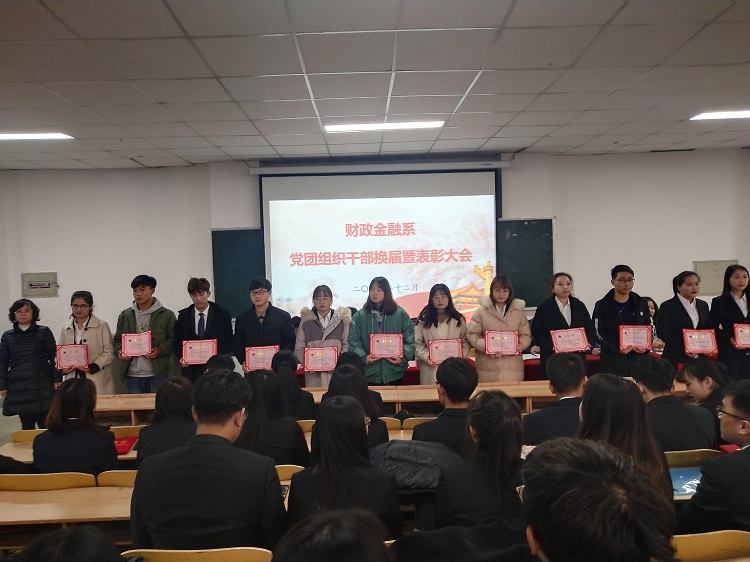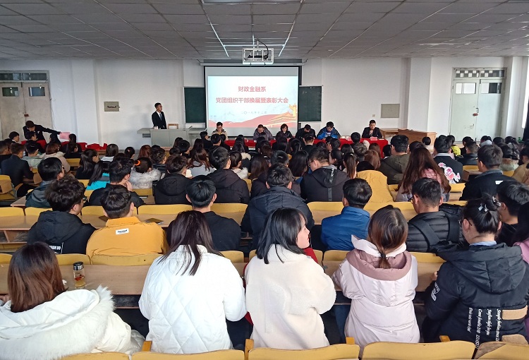 12月3日下午,财政金融系在善问楼215教室举行学生党支部、团总支、学生分会干部换届暨表彰大会。系主任史安玲,系党总支书记张计强,教学副主任李互武,全体辅导员老师及党、团、班级学生干部200余人参加了大会,会议由团总支书记张德红主持。