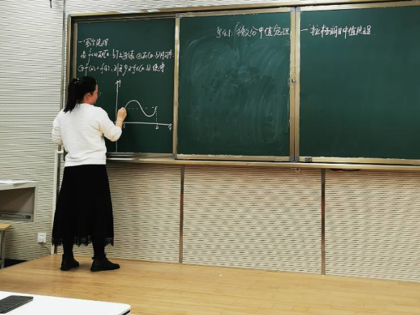 吴芮民老师讲解了微分中值定理中一个非常重要的定理——拉格朗日中值定理。整堂课板书讲授,精神饱满、自然大方、思维活跃、书写规范。课程从图形入手,数形结合,直观明了的讲解拉格朗日中值定理的引入及分析证明,在通过例题展示定理的应用。整个过程讲解透彻,重难点突出,很好的起到了教学示范的作用。