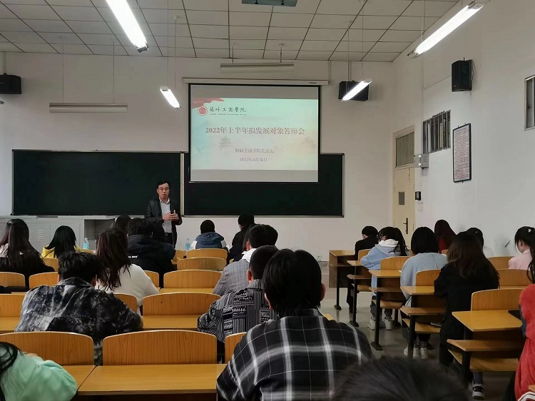 为确保党员发展质量,把握好党员队伍“入口关”,根据学校党委有关安排,4月21日下午,我院在实验楼104、107、108、109教室举行财政金融学院2022年上半年拟发展对象公开答辩活动,本次答辩分为四组,分别由我院党总支书记张计强、院长梁磊、副院长李互武、教工支部书记富永年担任组长,专业课教师党员和学生党员担任组员,本次答辩会共有61名拟发展对象参加答辩,150名入党积极分子观摩。