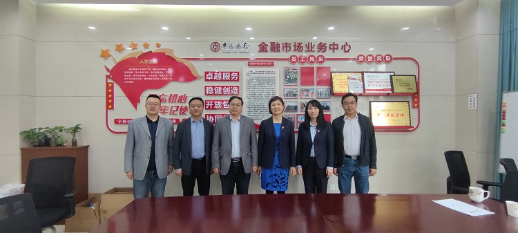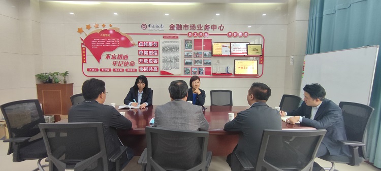 为进一步加强学院专业建设,掌握金融行业发展趋势,为学院教师搭建实践平台,推进金融学、金融科技专业建设,学院领导班子成员梁磊、赵明霄、张计强、李互武,教师代表韩宇滢一行于2022年4月24日赴中国银行甘肃省分行调研。金融市场部总经理张德华、人力资源部副总经理张英陪同调研并与我院参会人员进行交流。