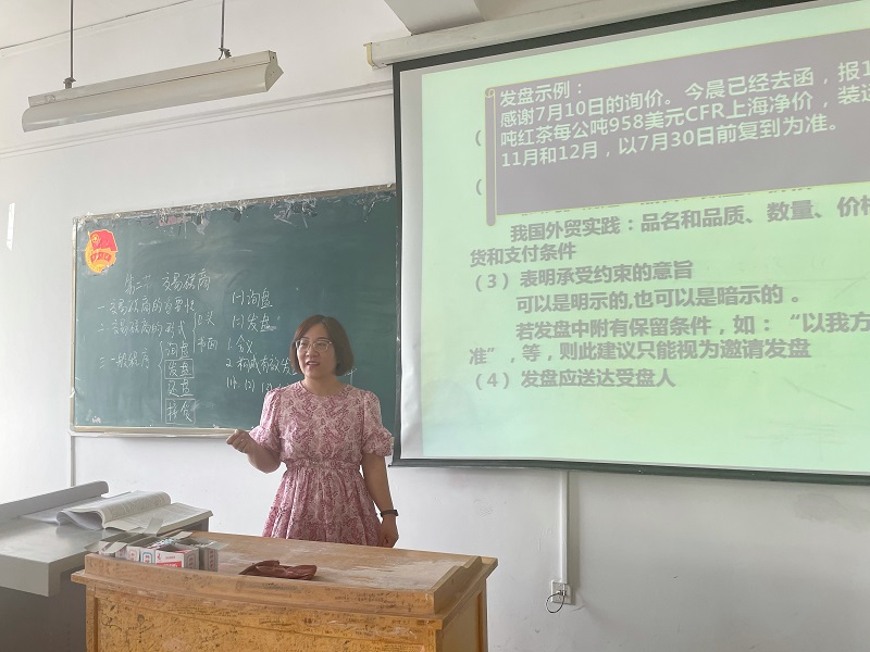 教研室教师观摩了赵芳老师讲授的《国际贸易实务》课程。赵老师结合案例对发盘的含义、构成发盘的必备条件、发盘的撤回和撤销、发盘的失效等四个方面进行了详细讲授。
