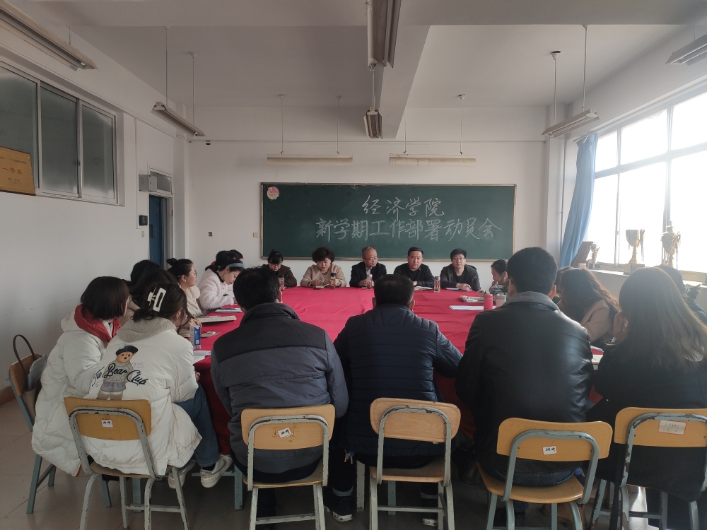 人勤春来早,实干启新程。2月26日上午,经济学院在明辨楼413召开新学期工作部署动员会。学院领导班子及全体教职员工参加,会议由学院院长秦勇主持。