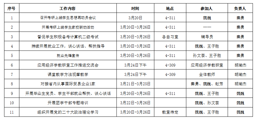 经济学院2022-2023学年第二学期3月20日至3月26日工作安排(第4周)