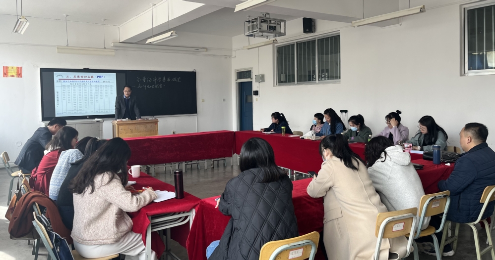 首先,朱万里老师围绕“计量经济学基本假设”内容展开教学活动,通过提问、讨论方式和学生互动;对于重点难点的处理,根据课程性质,主要通过举贴近生活的例子,结合数据让学生动手计算等方式,加深学生对重难点问题的理解。同时,朱老师强调,年轻教师一定要研究所带课程的经典教材,吃透教学内容,这样才能准确把握重难点。随后,窦剑军老师以《计量经济学》课程中“总体回归函数”部分为例展示了对于重难点问题讲授方法,他是以具体数据为例,将数据特征展现在可视化的图中,让学生对数据特征有更直观的印象,然后通过板书推导公式,将复杂的问题简单化,更有助于学生理解。