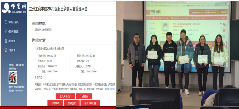刘老师从实验课性质出发,主要从市场热点解读、盘面信息识读及练习、证券模拟交易平台的下单操作进行了示范演示操作,介绍了叩富网站创建的兰州工商学院2020级股王争霸大赛,引入的金融投资实战平台和大智慧申久金融投资实训平台,并模拟演示了股票的下单交易。