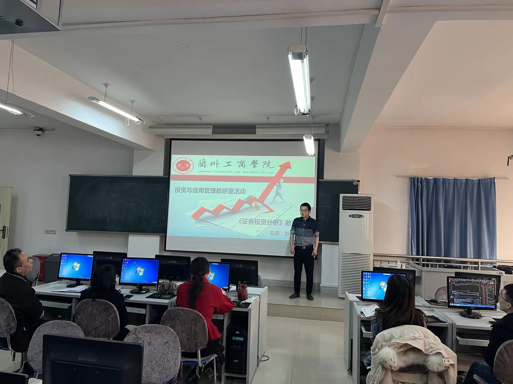 为进一步落实“以学生为中心”教学目标,通过将“课证赛”融入证券投资分析课堂,培养具备证券分析能力、财务分析能力、投资理财能力的复合型人才,将实验课教学效果落到实处,促进教师专业成长。2023年3月21日下午,财政金融学院投资与信用管理教研室在实验楼401教师进行了《证券投资分析》实验课的教学观摩。活动由教研室主任王俊副教授主持,教学院长何颖及全体教研室成员参会,刘子泰老师主讲。