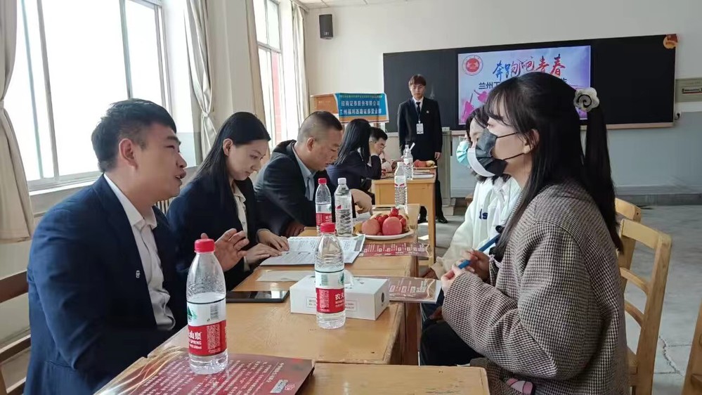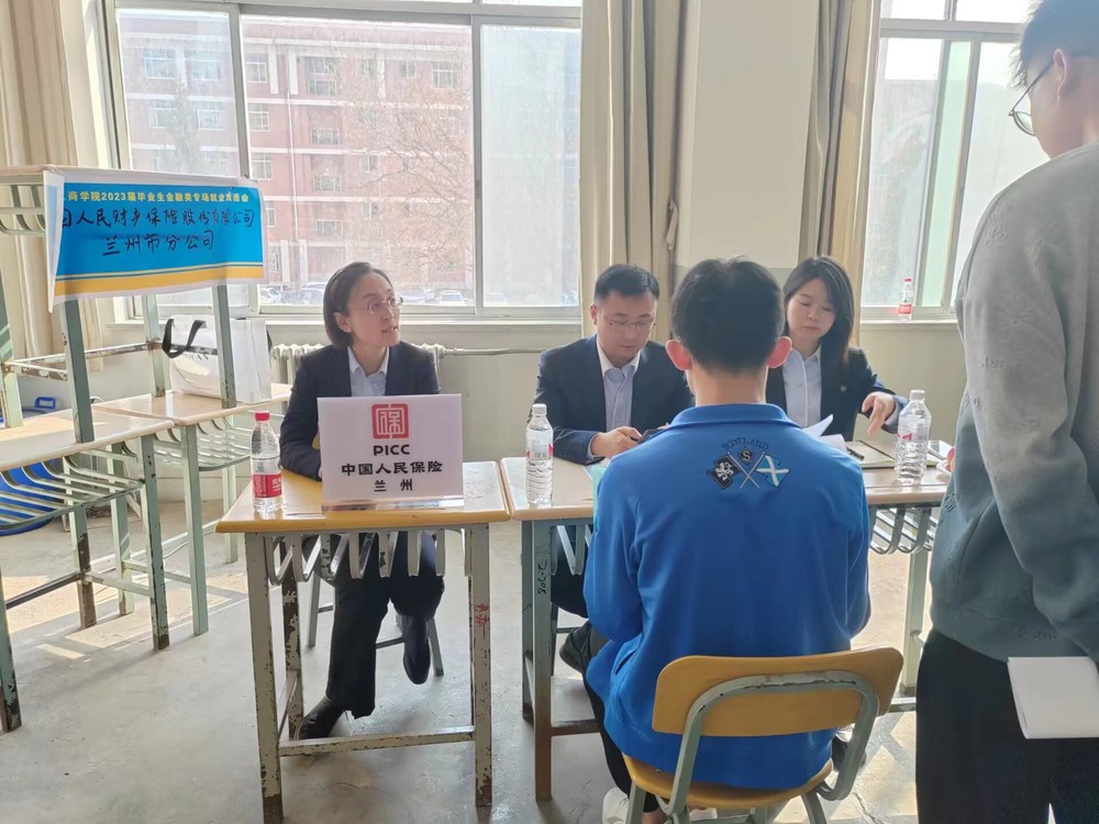 本次双选会邀请了中华联合财产股份有限公司、华福证券有限责任公司甘肃分公司、中国太平股份有限公司兰州中心支公司、泰康人寿保险有限责任公司甘肃分公司等20家优质企业参会,提供了行政、人力、培训、营销等不同类型岗位300余个。近千名学生到场竞聘,部分大三年级、大二年级学生在辅导员及任课教师的带领下来到现场模拟面试,提前了解行业需求,前置职业规划,确定就业目标做好准备。