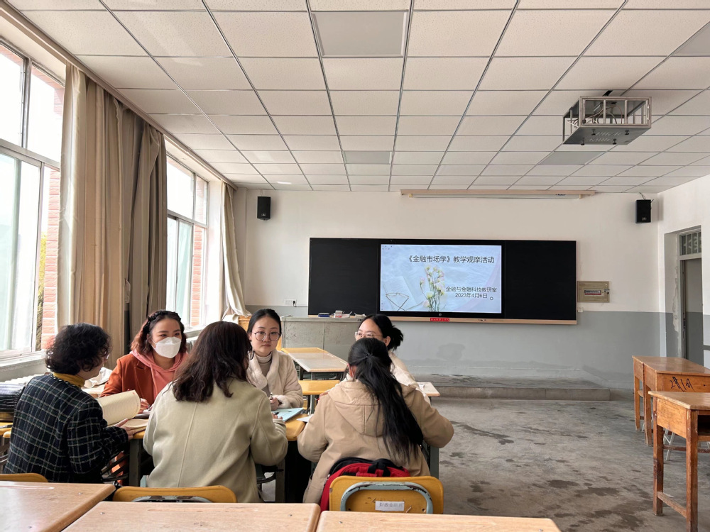 2023年4月6日中午13:10分财政金融学院金融与金融科技教研室组织《金融市场学》课程教学观摩活动,教研室成员史安玲、裴文静、徐蕊洁、李小艳、王悦老师参加观摩。